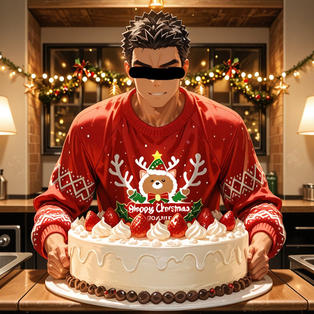 クリスマスをテーマに、サンタやトナカイコスプレをしている男性を、キャラクターごとにお任せ作成しました。男らしいキャラクターの魅力を思い切って表現しました。