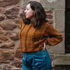 The featured yarn is The Fibre Co. Cumbria in the colorway Catbells, and it is a luscious blend of Merino, Masham and mohair in a rich cinnamon brown. The Masham and mohair give the finished fabric a lovely drape, and the color resembles autumnal foliage – or perhaps the shaggy rust-red coat of a Highland cow!
