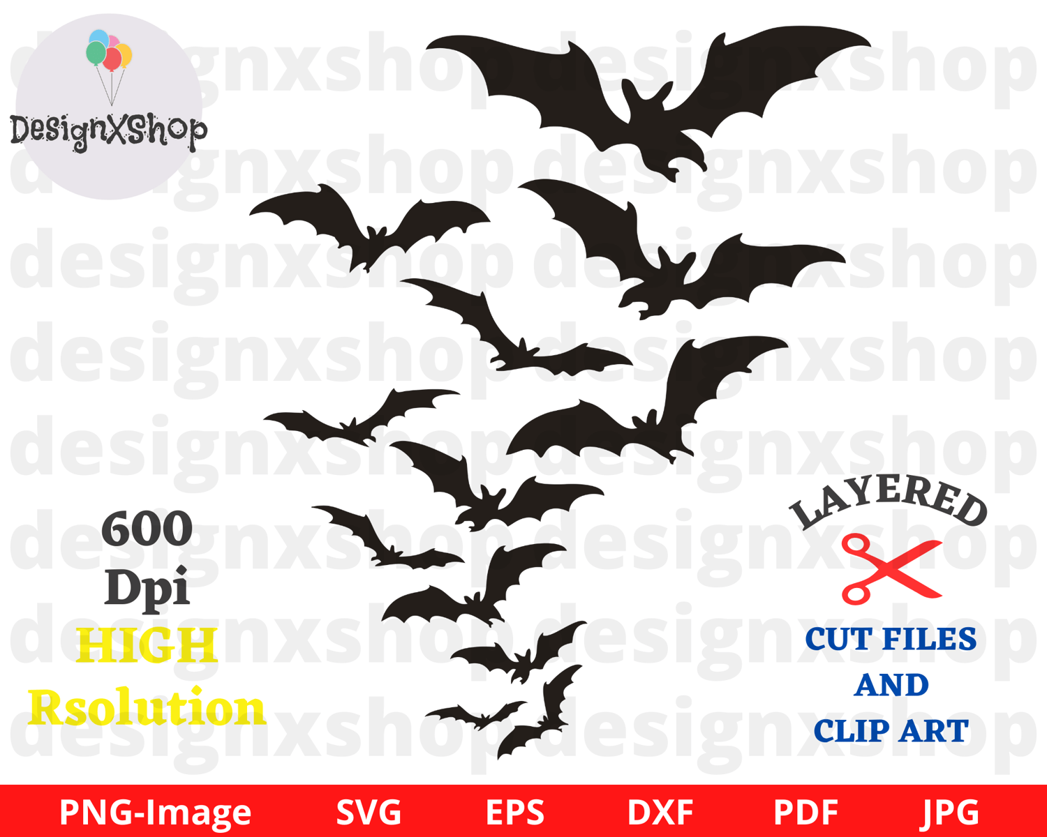 Free Halloween Flying Bats Silhouette, Free Bat SVG, PNG, PDF Free Digital Download
