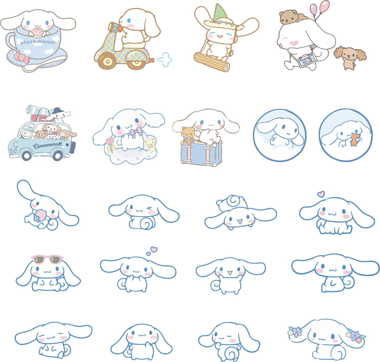 21 Large PNG Illustrator AI Cinnamoroll Sanrio Digital Artwork ,Stickers for Goodnotes digital planner, kawaii aesthetic clipart