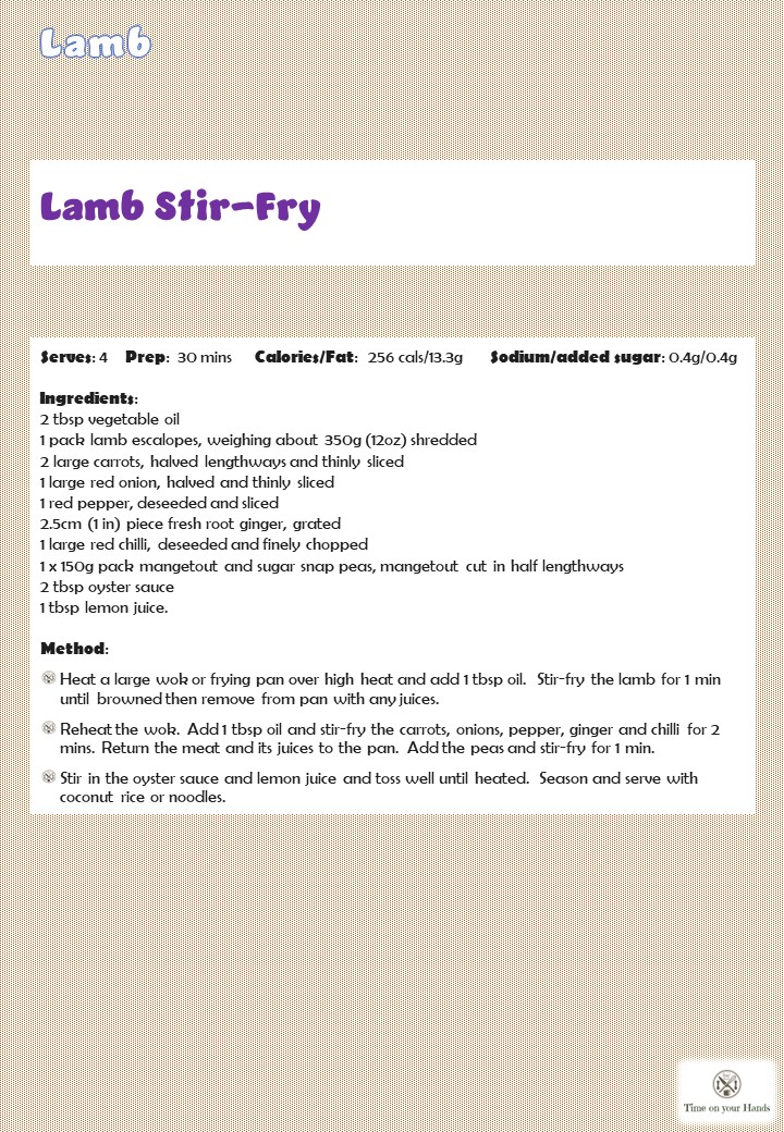 This selection of downloadable recipe cards for Lamb recipes have been taken from the Time on your Hands blog which was started in 2012.