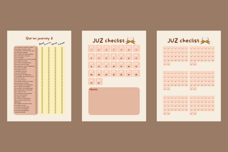 Qur'an pack | Qur'an surah checklist | Juz Checklist |Everything you need to learn or read Qur'an