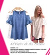 Molde Digital PDF Remera Hombro Abierto , Manga con volado Pack Talles S al XXL