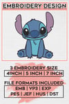 Cute Stitch Character Embroidery Designs, Lilo and Stitch Machine Embroidery Files, Cartoon Character Machine embroidery designs, Disney, 3 sizes, Digital Download
