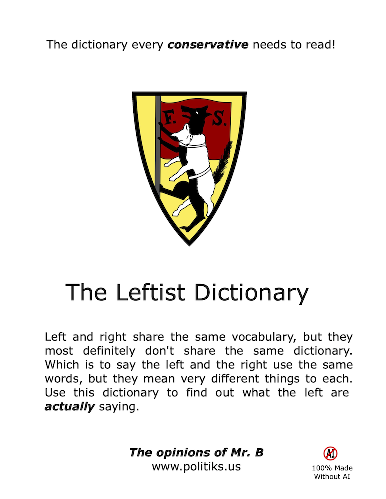 Left and right share the same vocabulary, but they most definitely don't share the same dictionary. Which is to say the left and the right use the same words, but they mean very different things to each. Use this dictionary to find out what the left are actually saying.