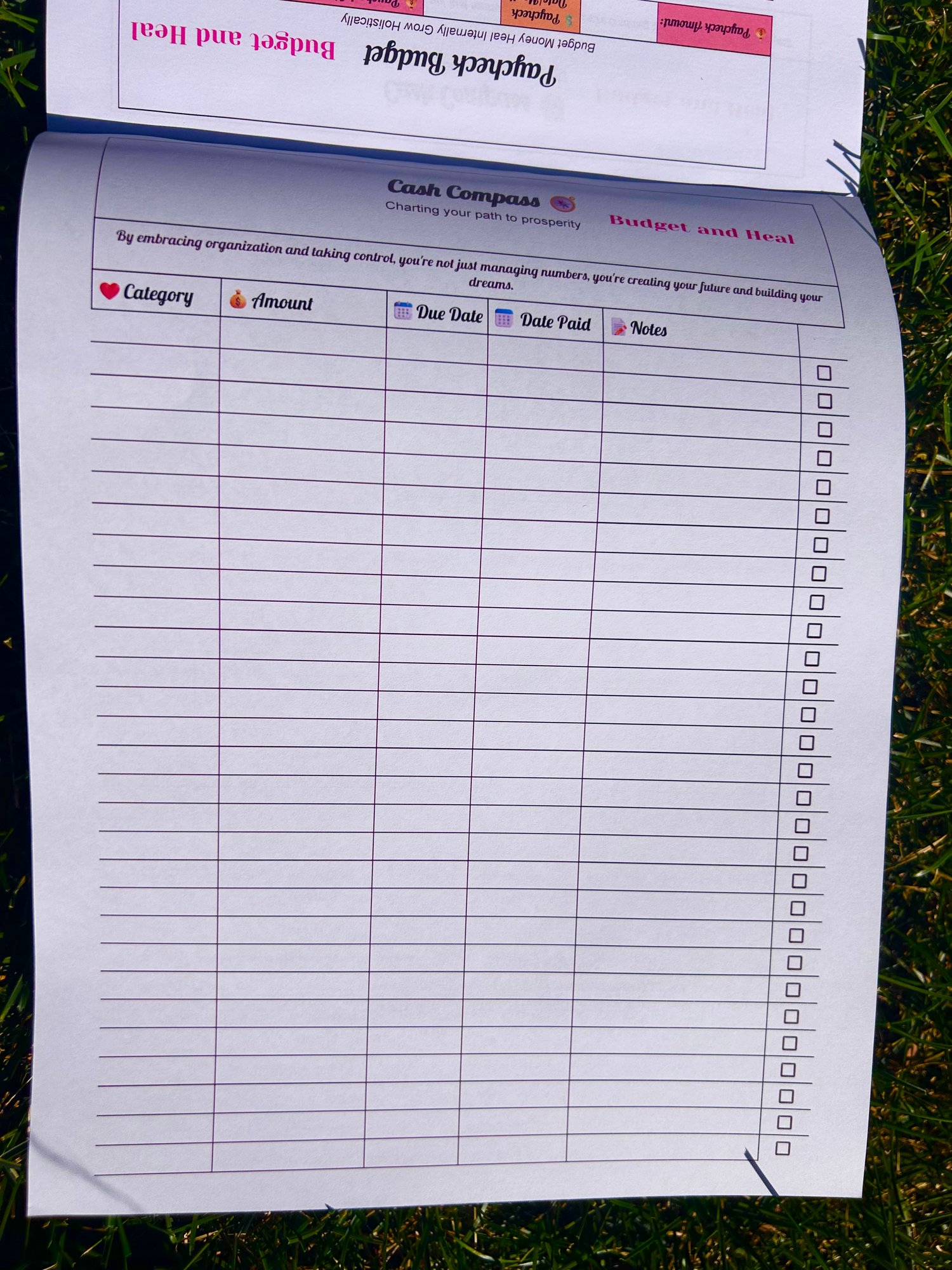- Version 1: Printable PDF Paycheck Budget & Cash Flow Compass