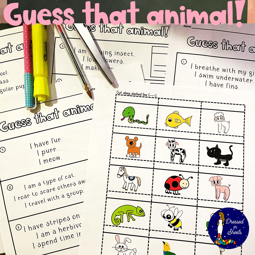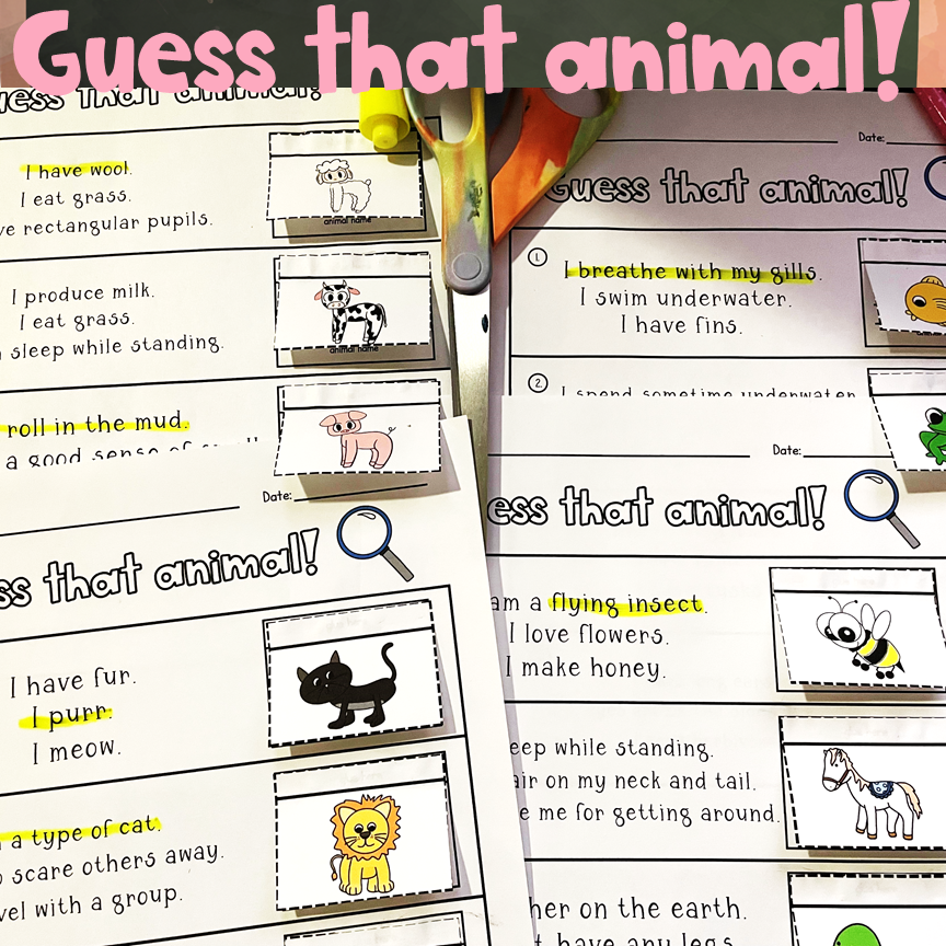 Guess that Animal! Cut and Glue Activity in English and Spanish