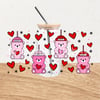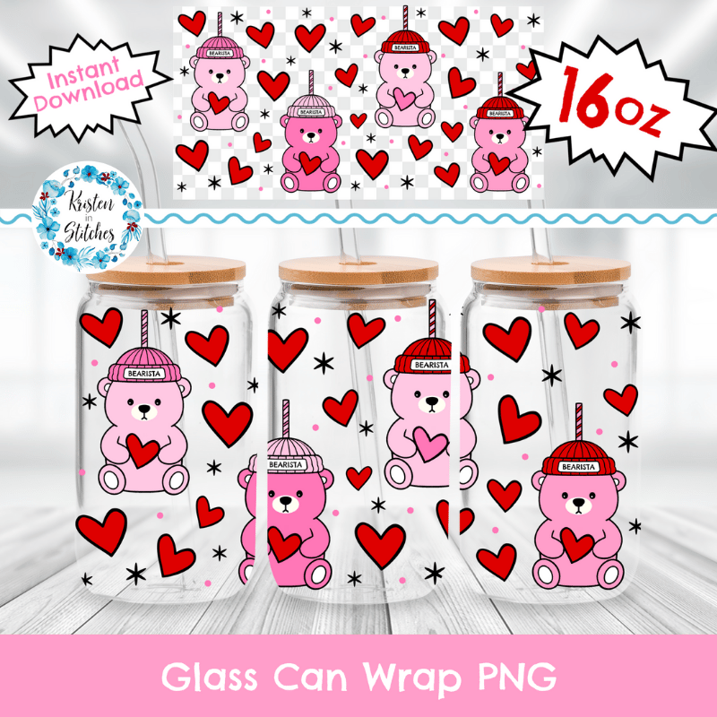 Bearista Beanie Bear Pink Drink Coffee Glass Can Wrap Transparent PNG, Red Hearts