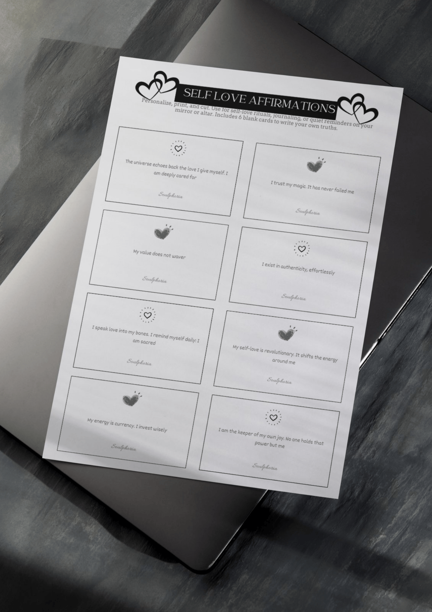50 Daily Self-Love Affirmations + 6 Custom Cards