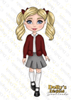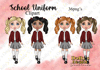 Instant digital download of our Cute School Girl in Burgundy Uniform and Pigtails PNG (36 PNG’s included one)