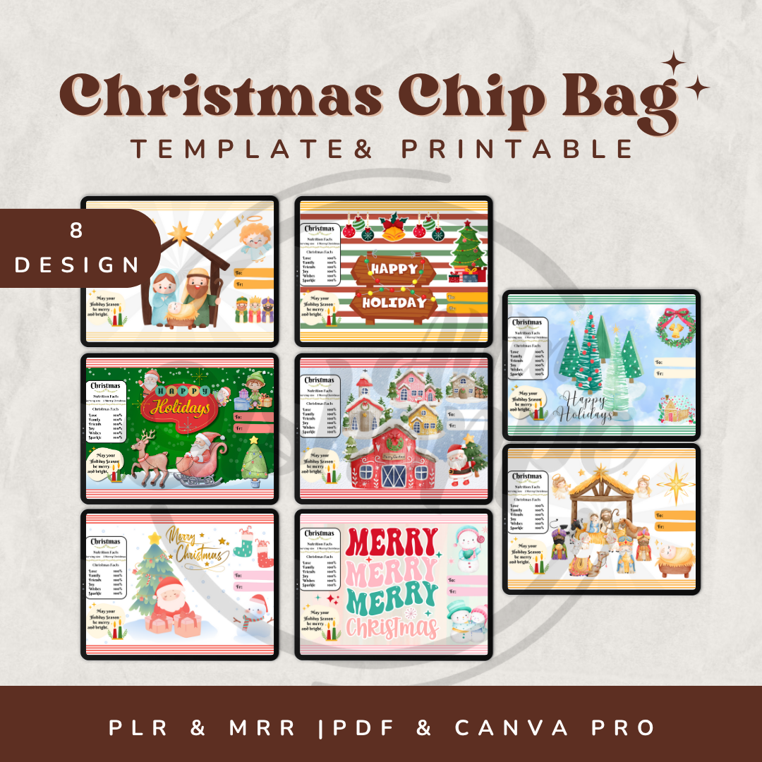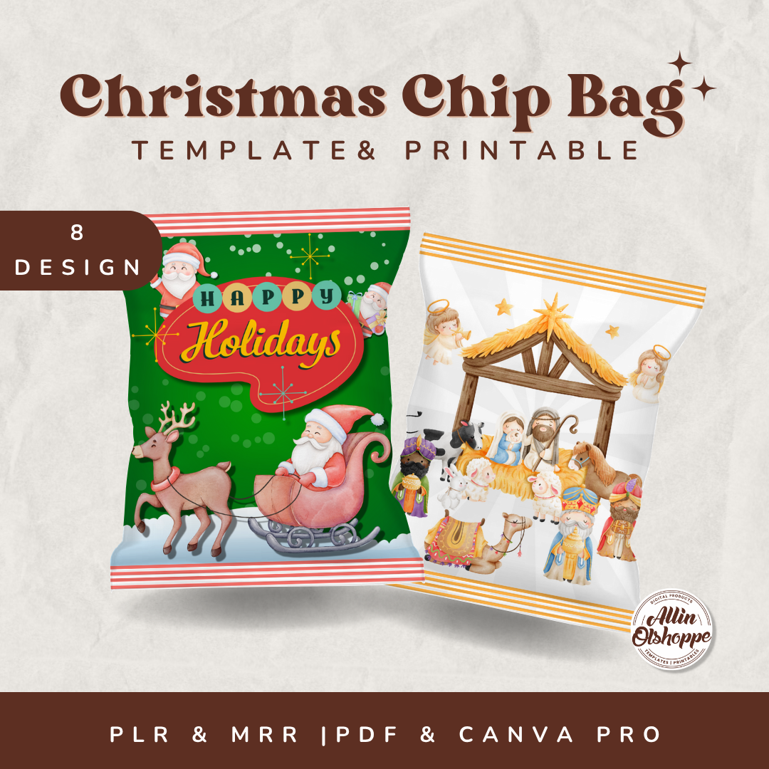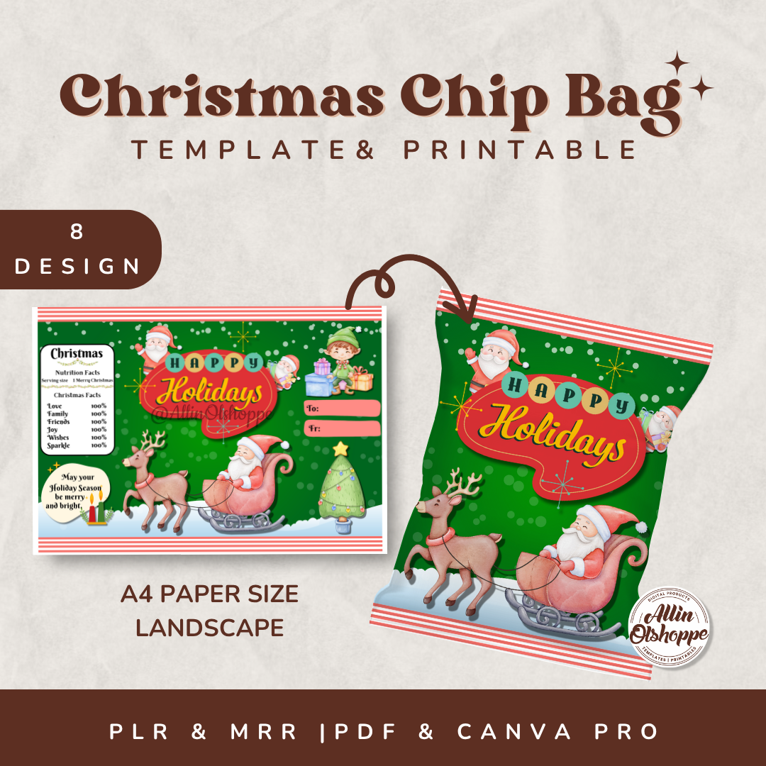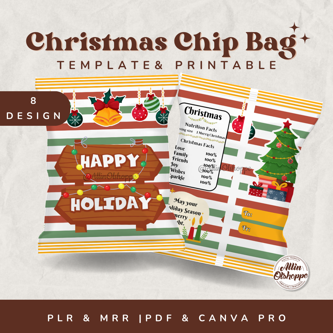 Chistmas Chip bag Template, Treat Bag, Editable in Canva Pro, Printable