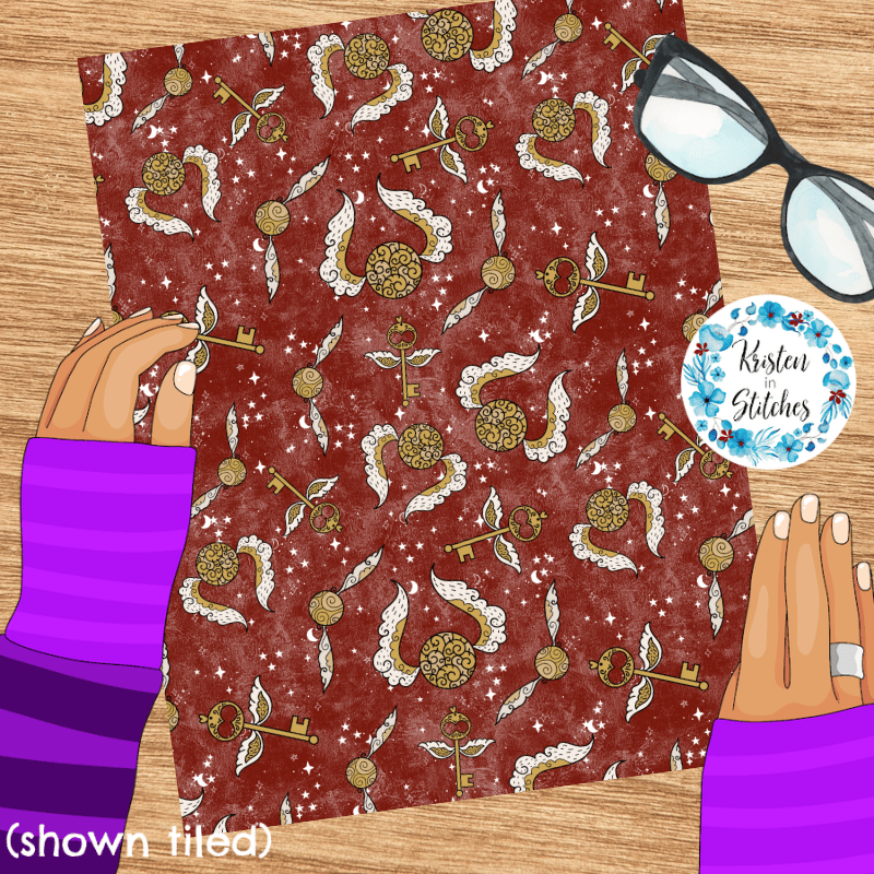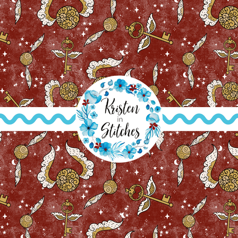Wizard world golden winged keys on scarlet red.