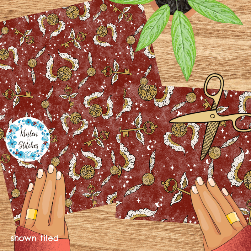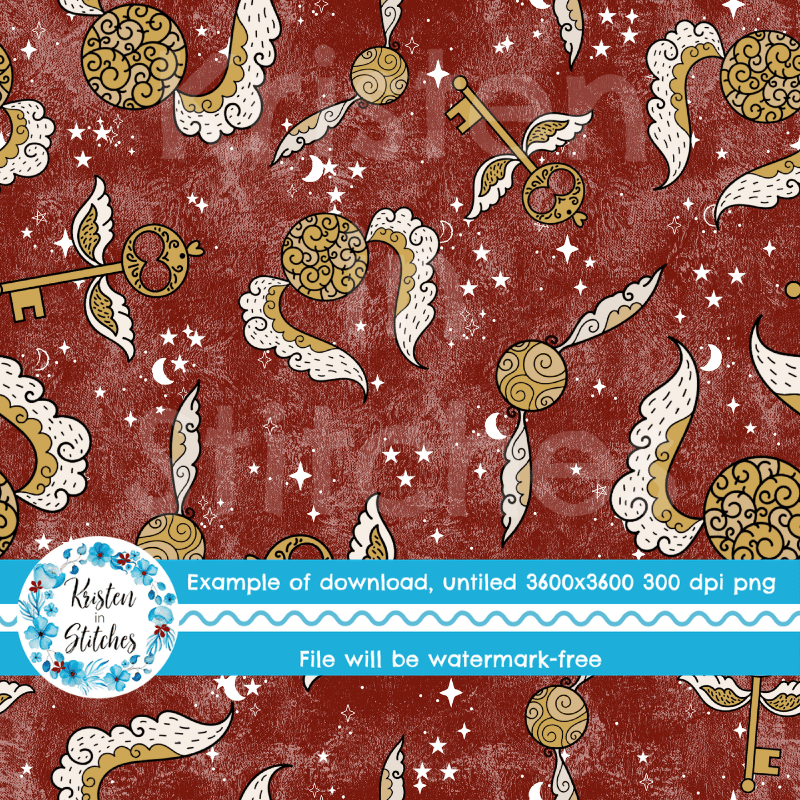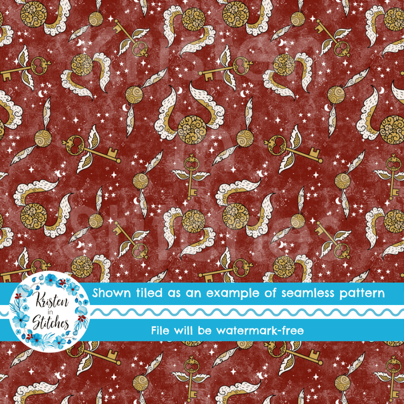Golden Winged Keys Magical Wizard School Seamless Pattern, Magic World Fantasy