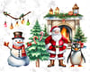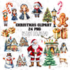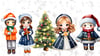 Design your own Christmas scene; includes Santa, snowman, reindeer, penguin, gifts, houses, fireplace, lights, trees, girls, boys, carol singers, candy canes. 24 PNGs. Instant download.