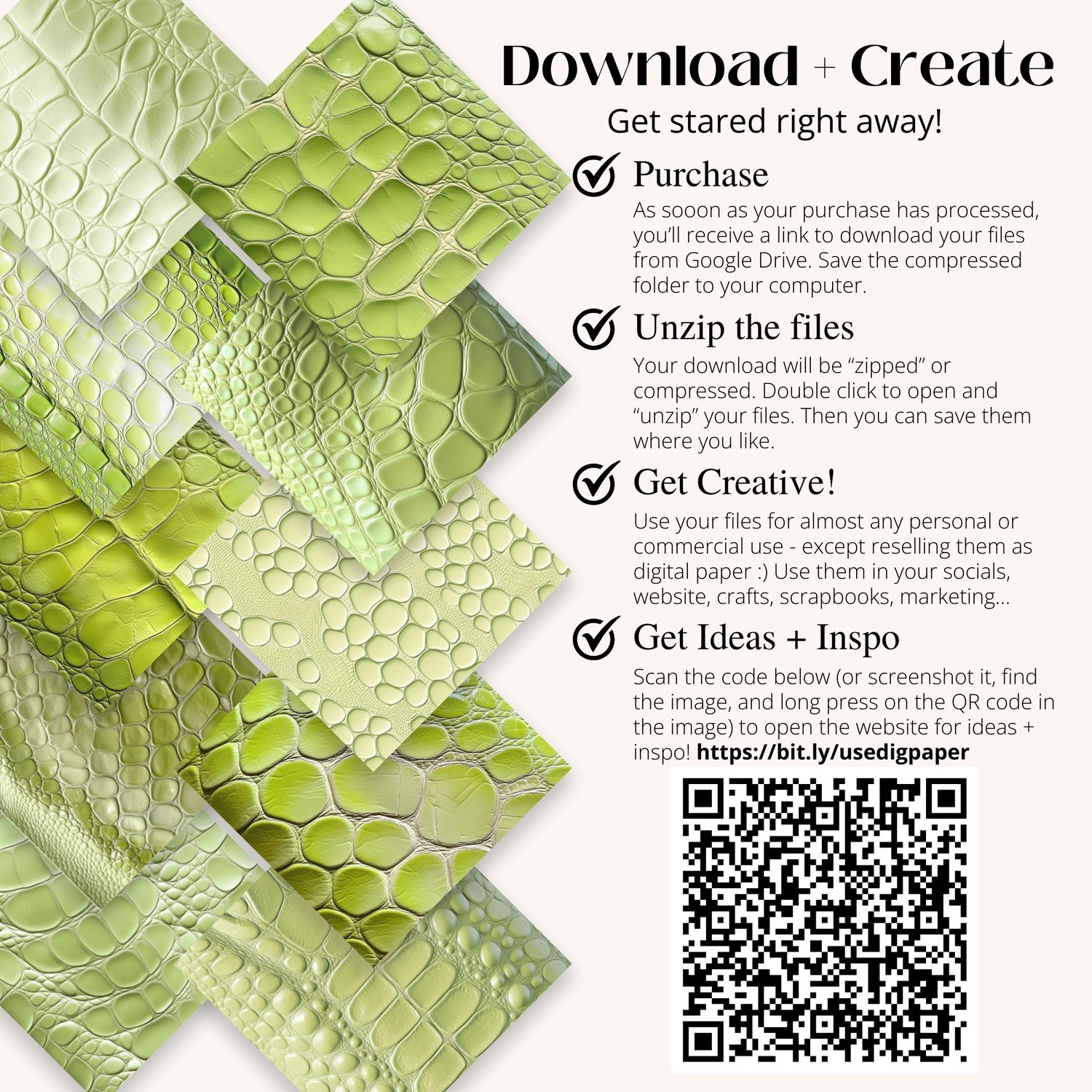 Elevate your creative projects with this Lime Cream Green Reptile Skin Digital Paper Set, inspired by Etsy’s Color of the Year 2025 and some of our favorite reptiles.
