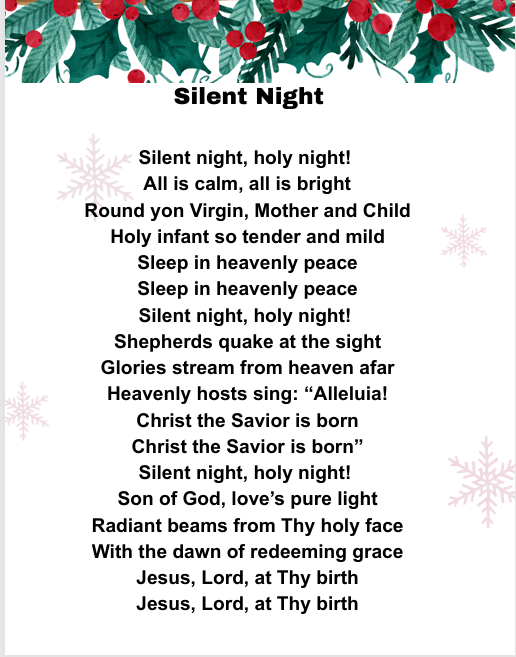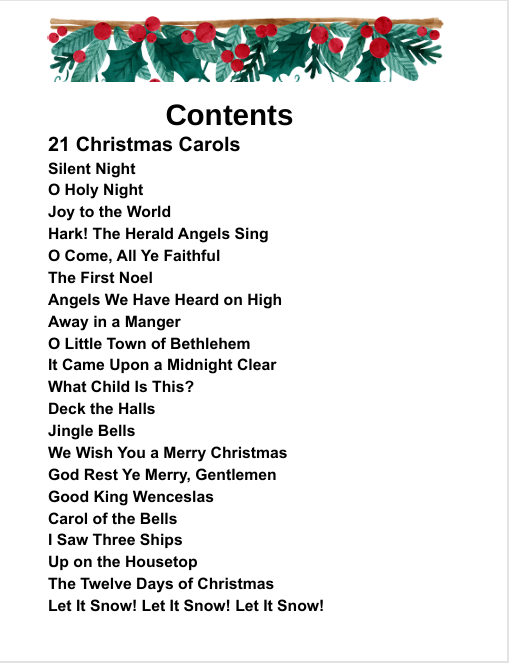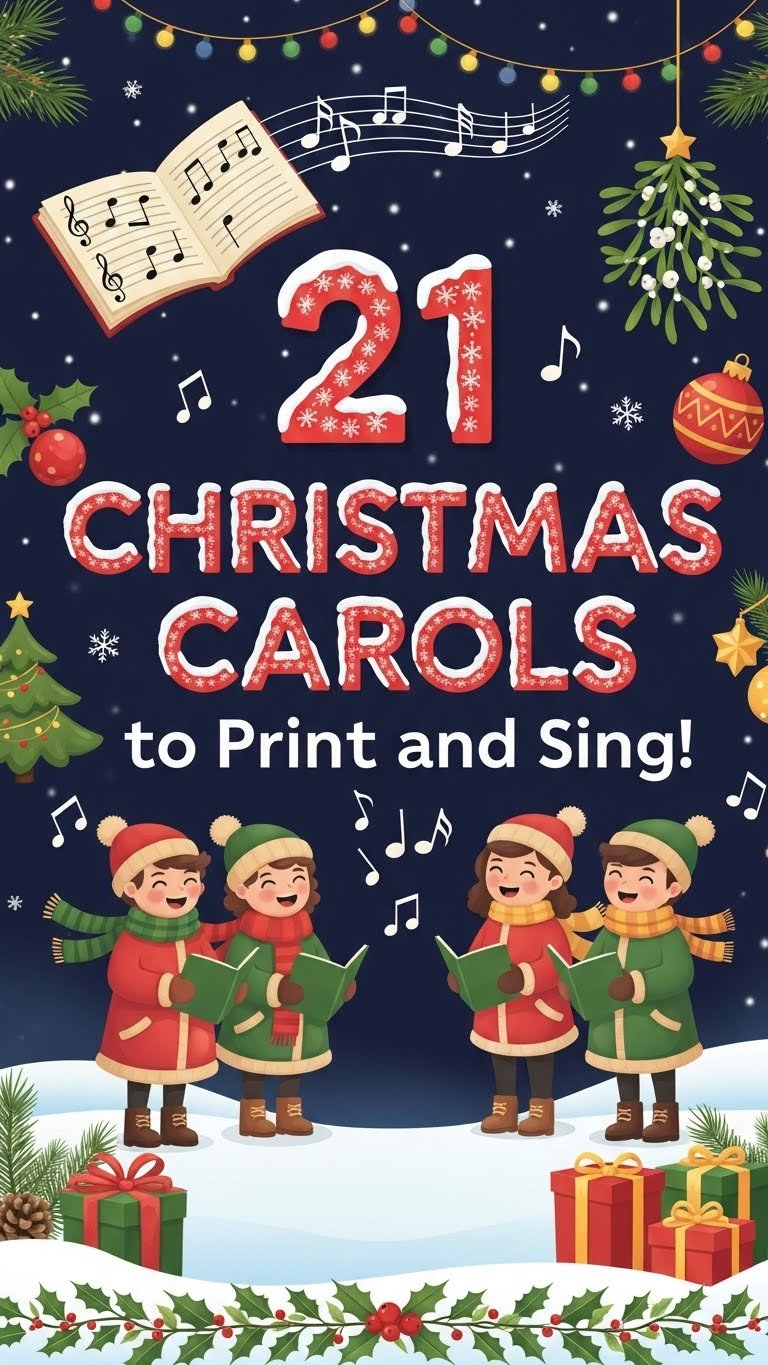This Christmas Carol printable download will definitely increase participation and fun! The “21” Christmas Carols, were chosen as the most favorite for Christmas Gatherings and for sing-alongs for adults and kids. The print is Bold and Lyrics are Easy to Read.