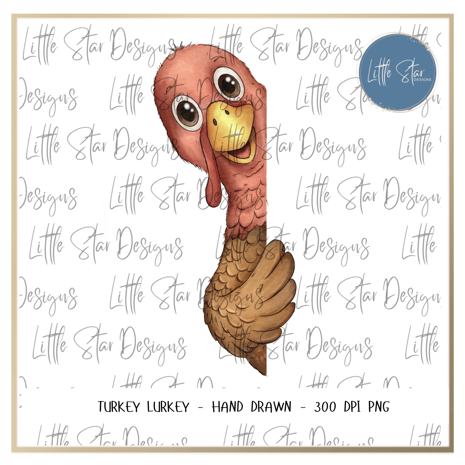 ⭐️ Inky Watercolour illustration featuring a peeking Turkey (1 PNG)