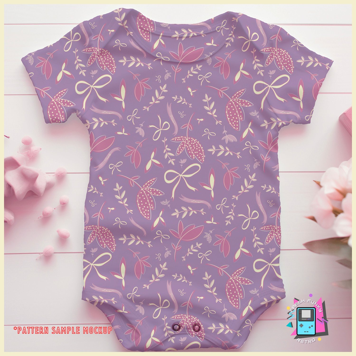 Enjoy this sweet floral pattern that has delicate bows and ribbons scattered throughout. Perfect for any creative projects with children in mind!