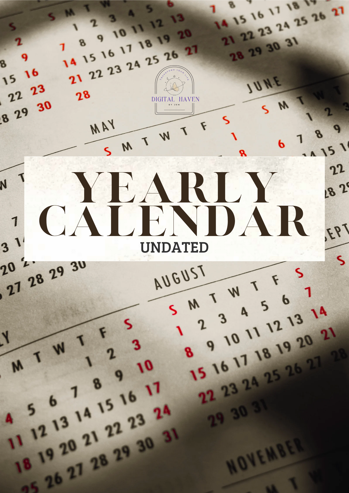 1 x Undated Yearly Calendar (A4 size, PDF format)