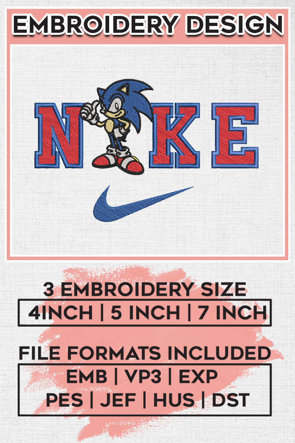 Nikee Sonic Character Embroidery Designs, Sonic The Hedgehog Machine Embroidery Files, Cartoon Character embroidery designs, Sonic Character, Digital Download