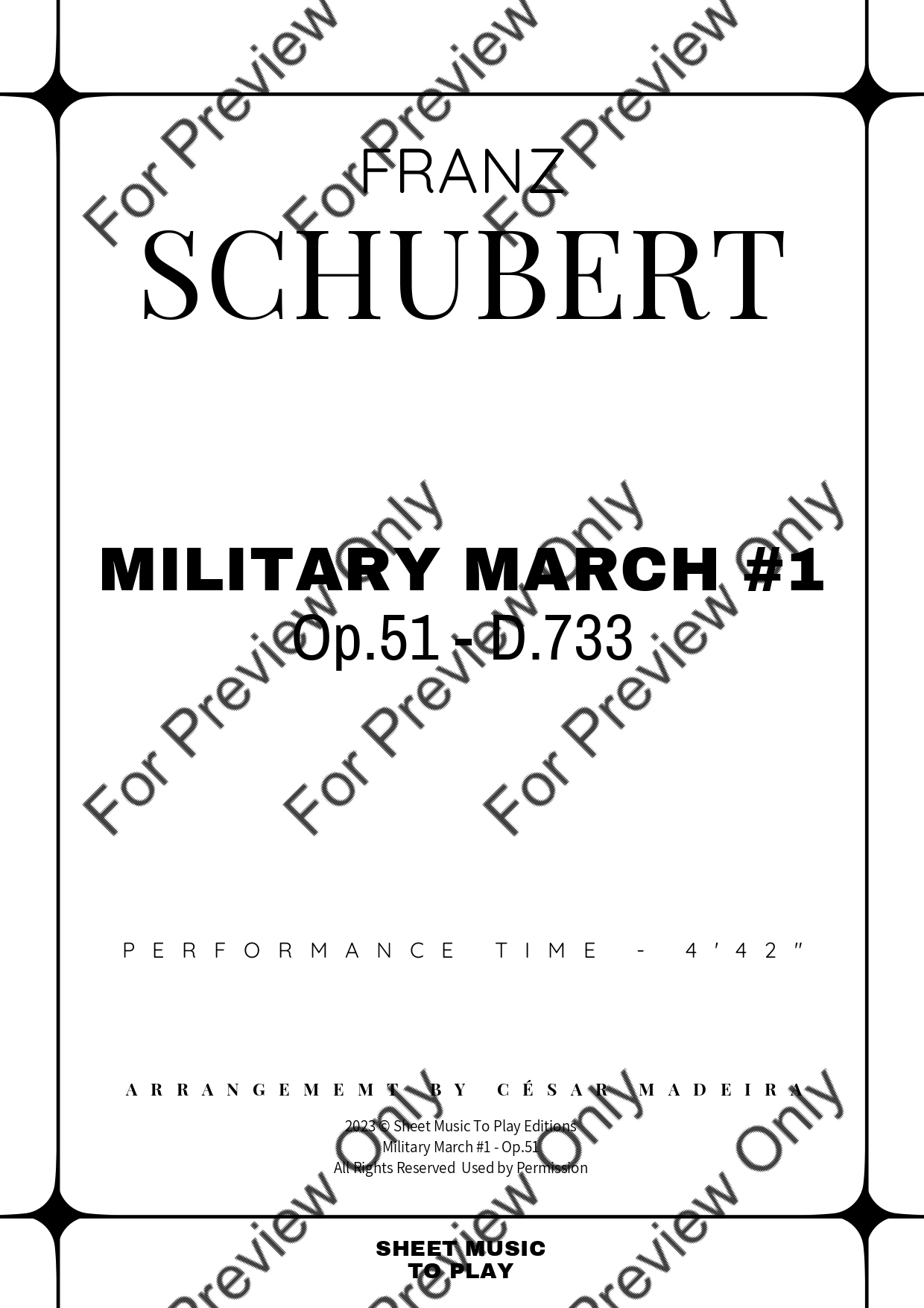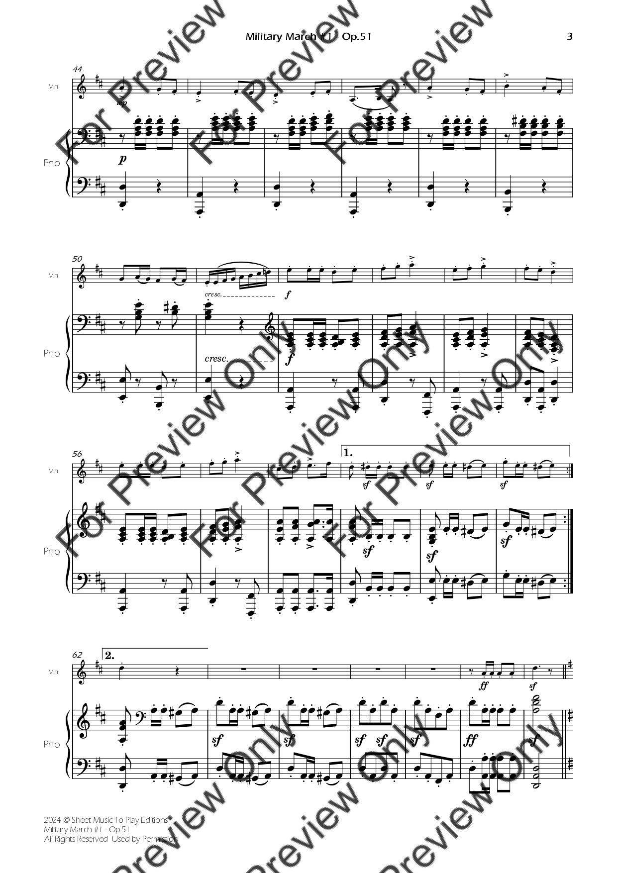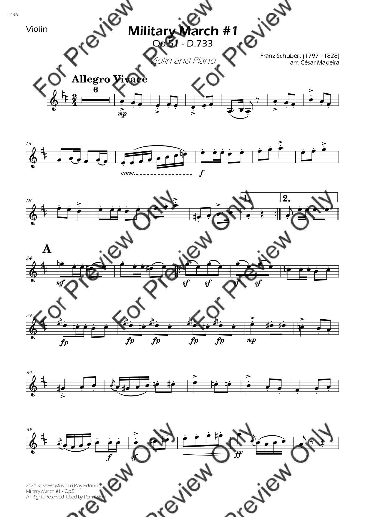 Military March No.1, Op.51 - D.733 by Franz Schubert. Arrangement for Violin and Piano. With Full Score and Individual Parts. Have fun!