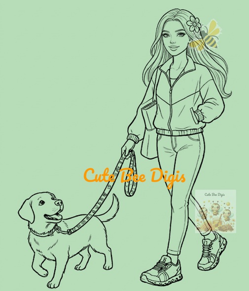 Ana and her furry friend Digital Stamp