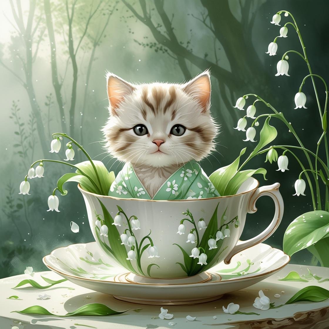 May Meowmoji – Lily of the Valley Cat-in-Cup Collection (Printable Set)