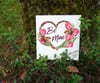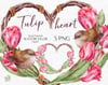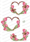 Heart-shaped wreaths with tulips and birds. Boho style