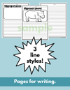 There are pages for writing so that students can learn about hippos and then write about them. They can use the provided sentences for handwriting practice or journal entries. There are 3 styles of lines — primary dotted lines and regular lines with 2 different spacing options.