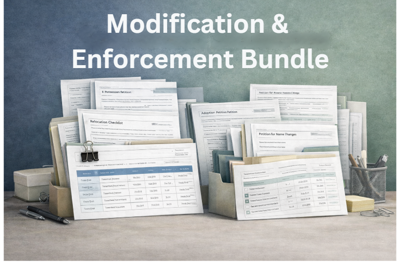 Circumstances change. Court orders get ignored. The Modification & Enforcement Bundle gives you every template needed to go back to court — whether you're seeking a modification based on changed circumstances or filing for contempt because the other party isn't complying. Your order means nothing if you can't enforce it.