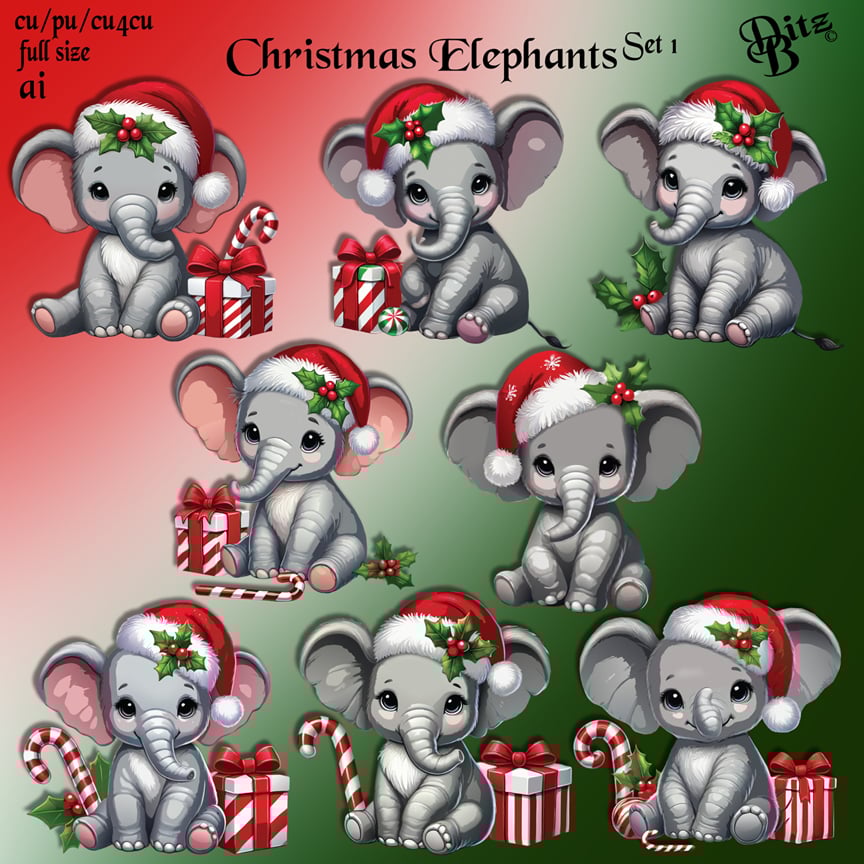 Christmas Elephants Set 1