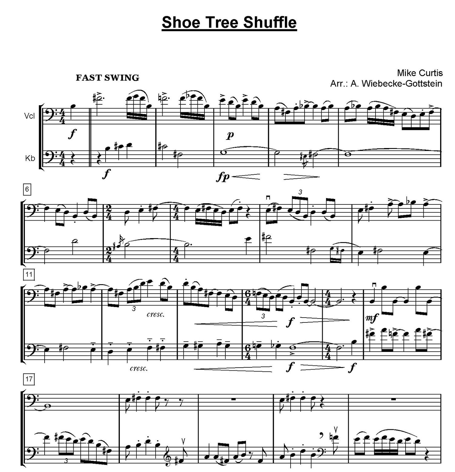 Swing, Latin und Blues - mit diesen Begriffen kann man die 8 Stücke dieses Duo-Bandes umschreiben. - So unterhaltsam die Musik dem Hörer vorkommen mag - sie ist trotzdem in jeder Beziehung recht anspruchsvoll, sowohl musikalisch-geistig wie auch musikalisch-technisch.