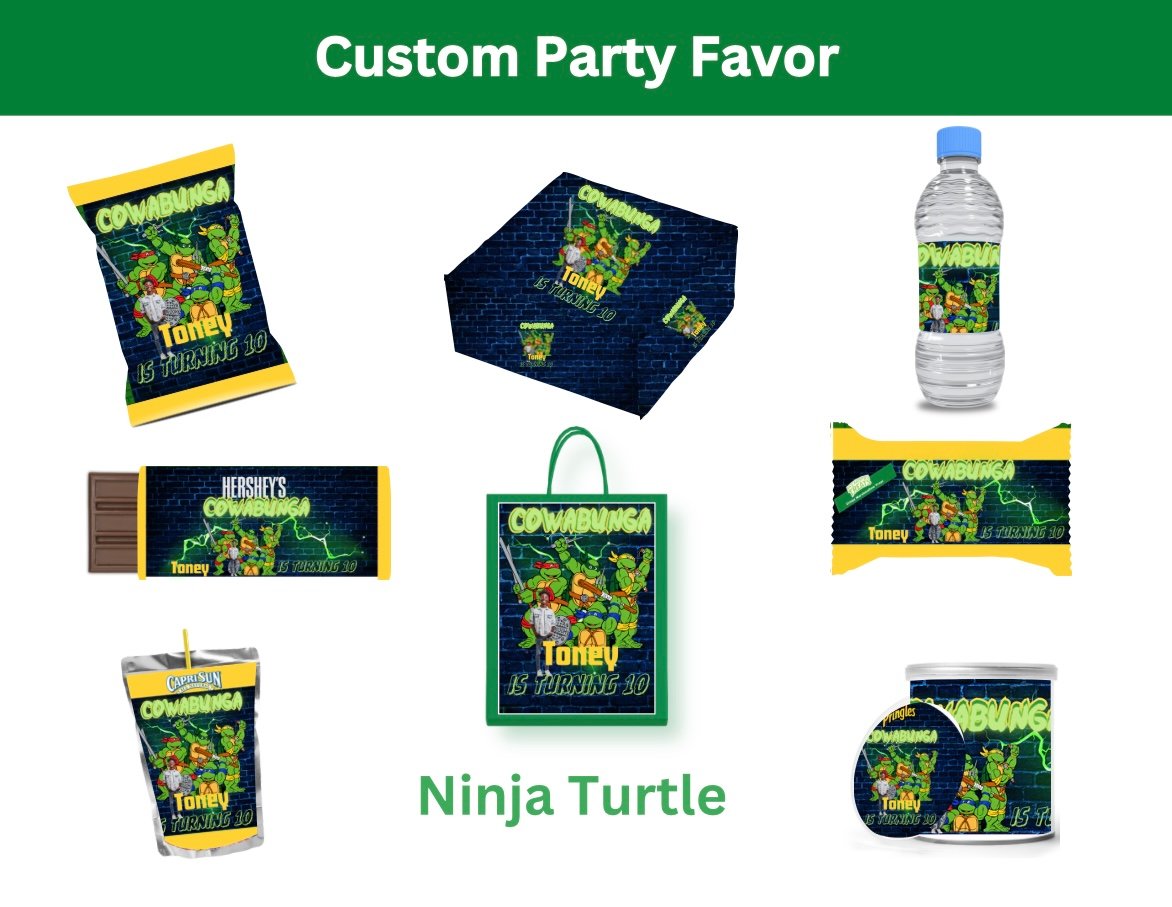 Elevate your Ninja Turtle-themed party with our Editable Party Favor Bundle! This digital product includes customizable templates allowing you to effortlessly add a personal touch to your event.