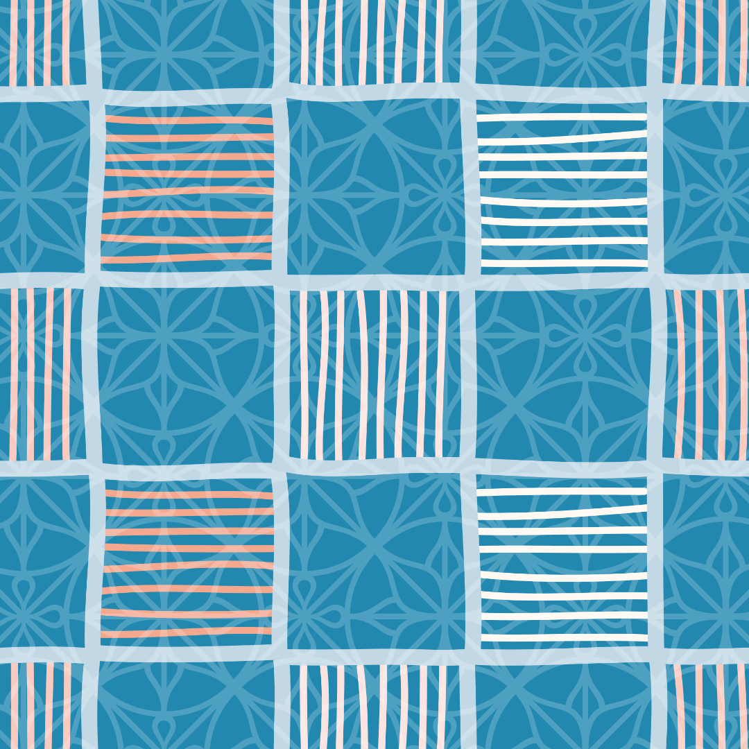 Striped Doodle Grid Vector Repeat Pattern