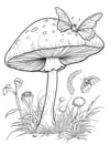 Magic Mushroom With Butterfly Coloring Pages