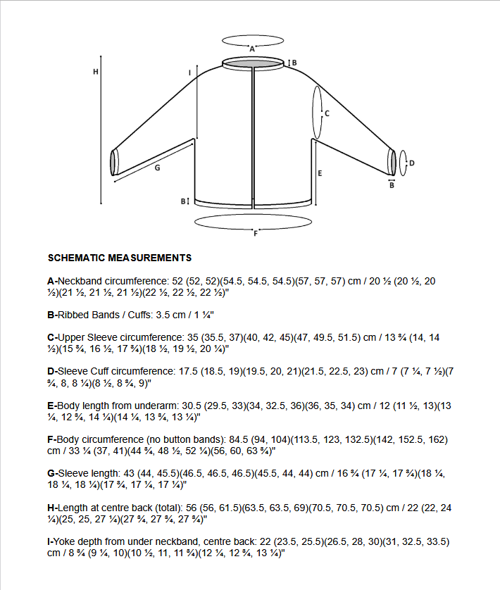 -The stitches of the button / buttonhole bands are picked up and knit and worked in rows of rib. If you wish to change the length of the cardigan, you will need to recalculate the spacing of the