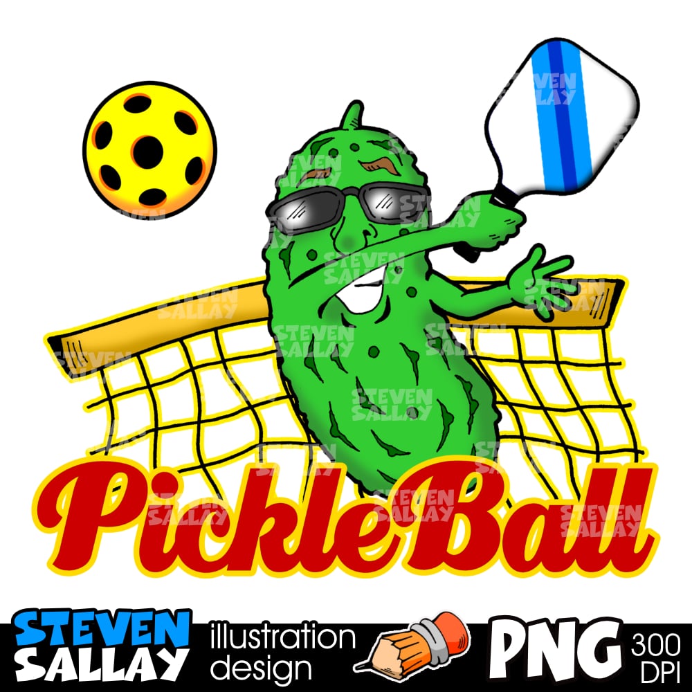 Funny Pickleball Cartoon Clipart – Pickleball Player Logo PNG Illustration | Digital Download.