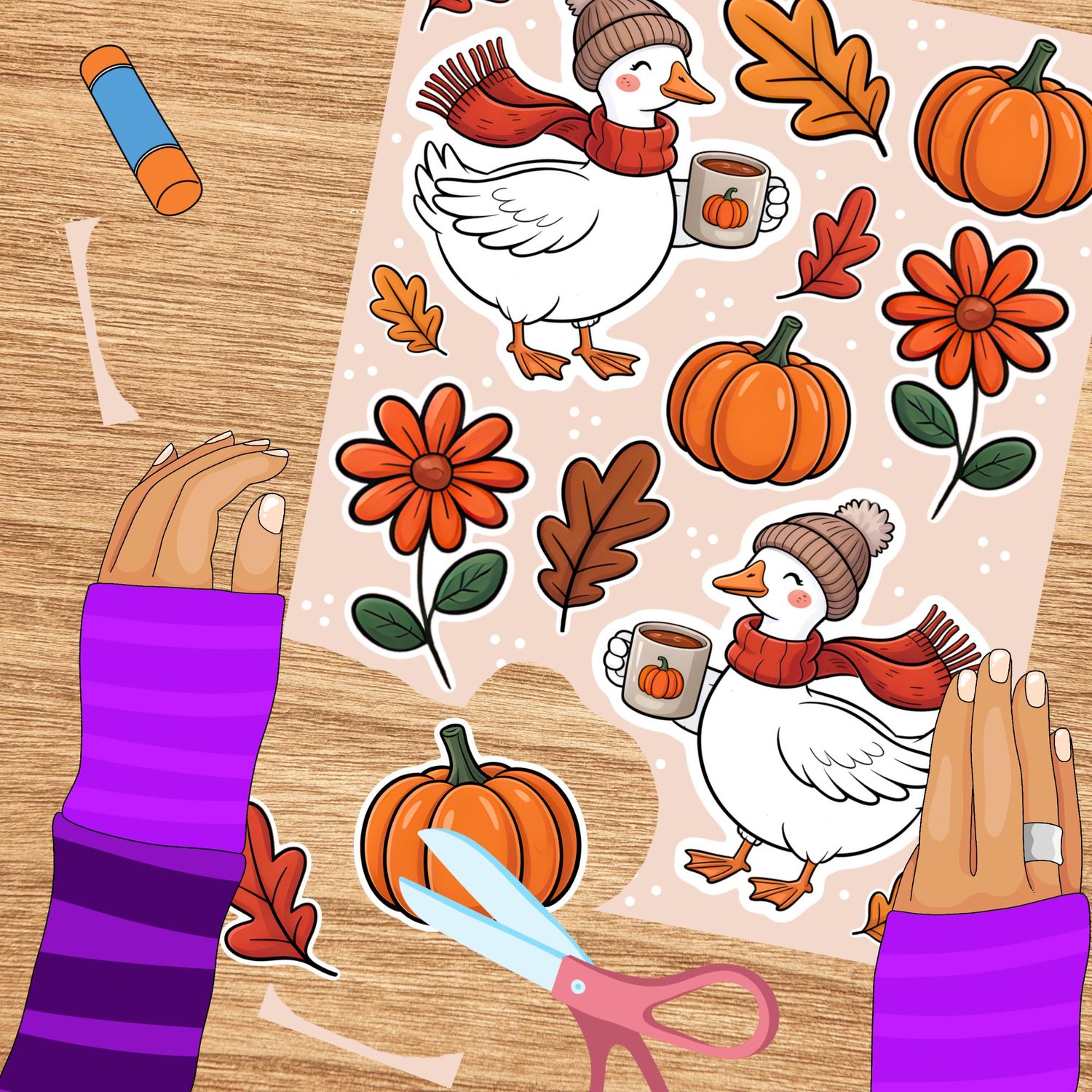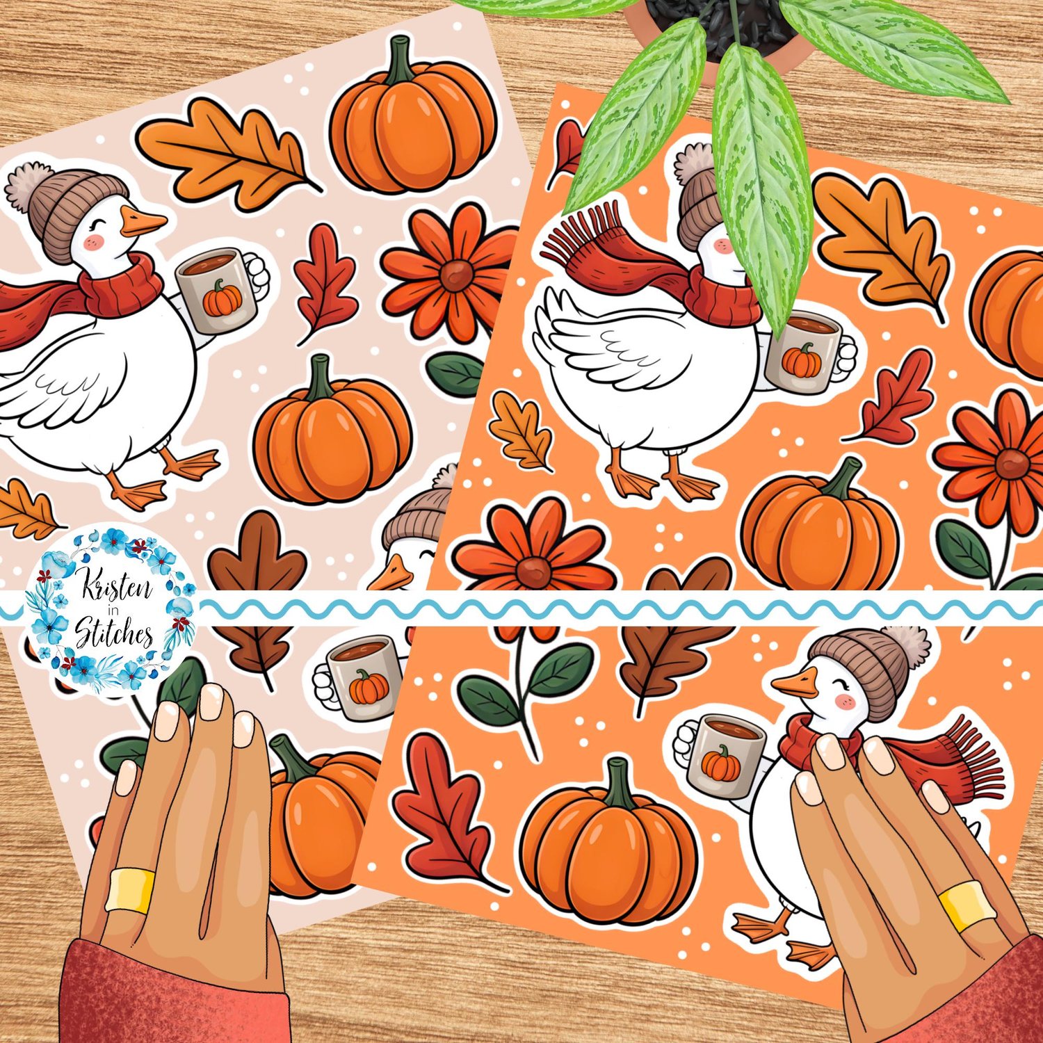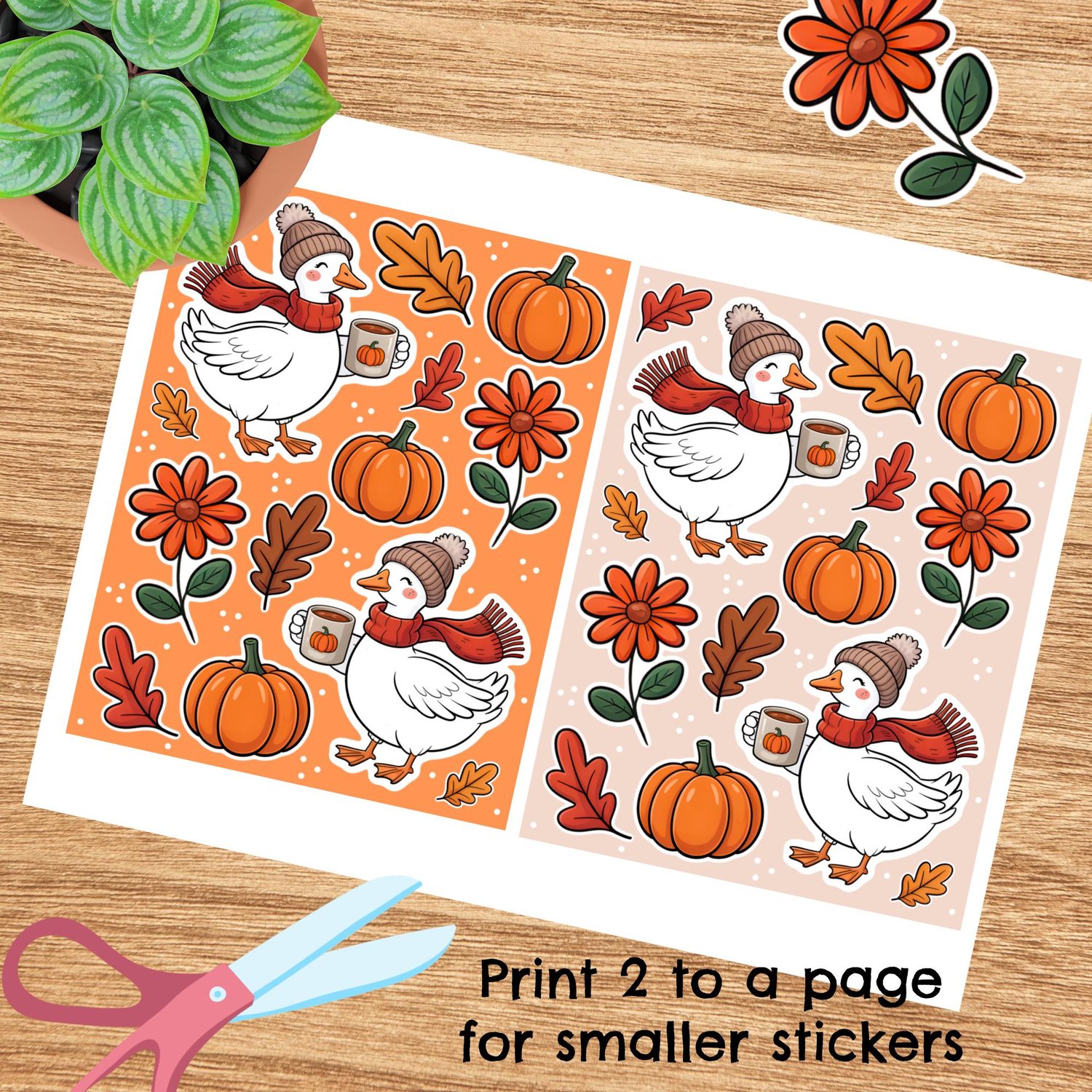 Cozy Goose Printable Sticker Sheets, PDF PNG, DIY Print & Cut Paper Crafts, Fall Thanksgiving Pumpkins