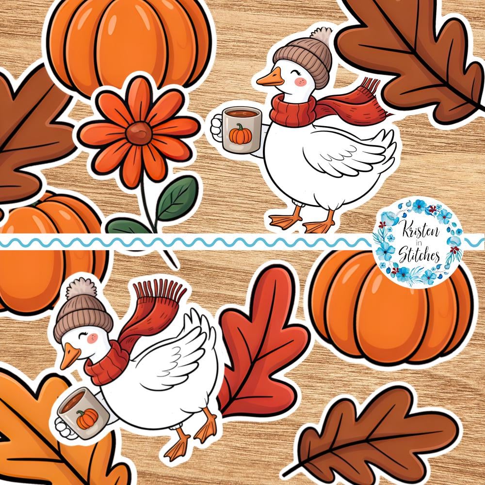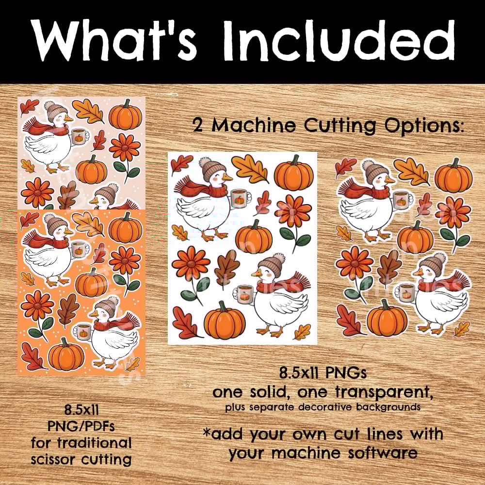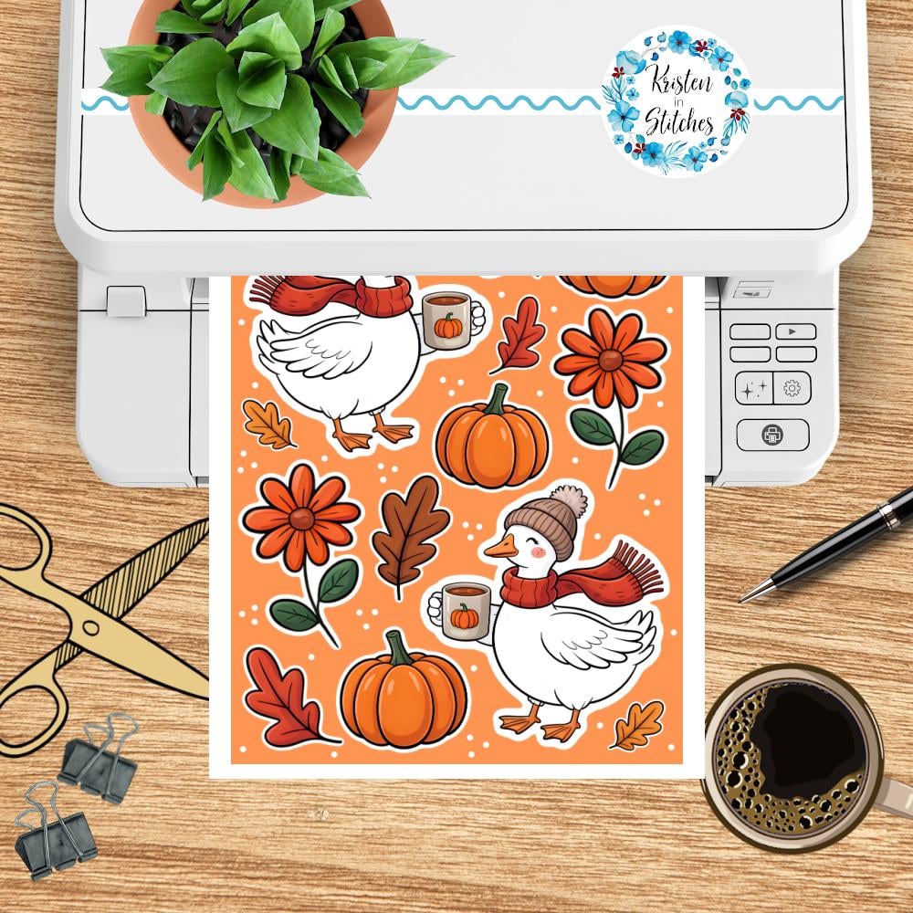 Cozy Goose Printable Sticker Sheets, PDF PNG, DIY Print & Cut Paper Crafts, Fall Thanksgiving Pumpkins