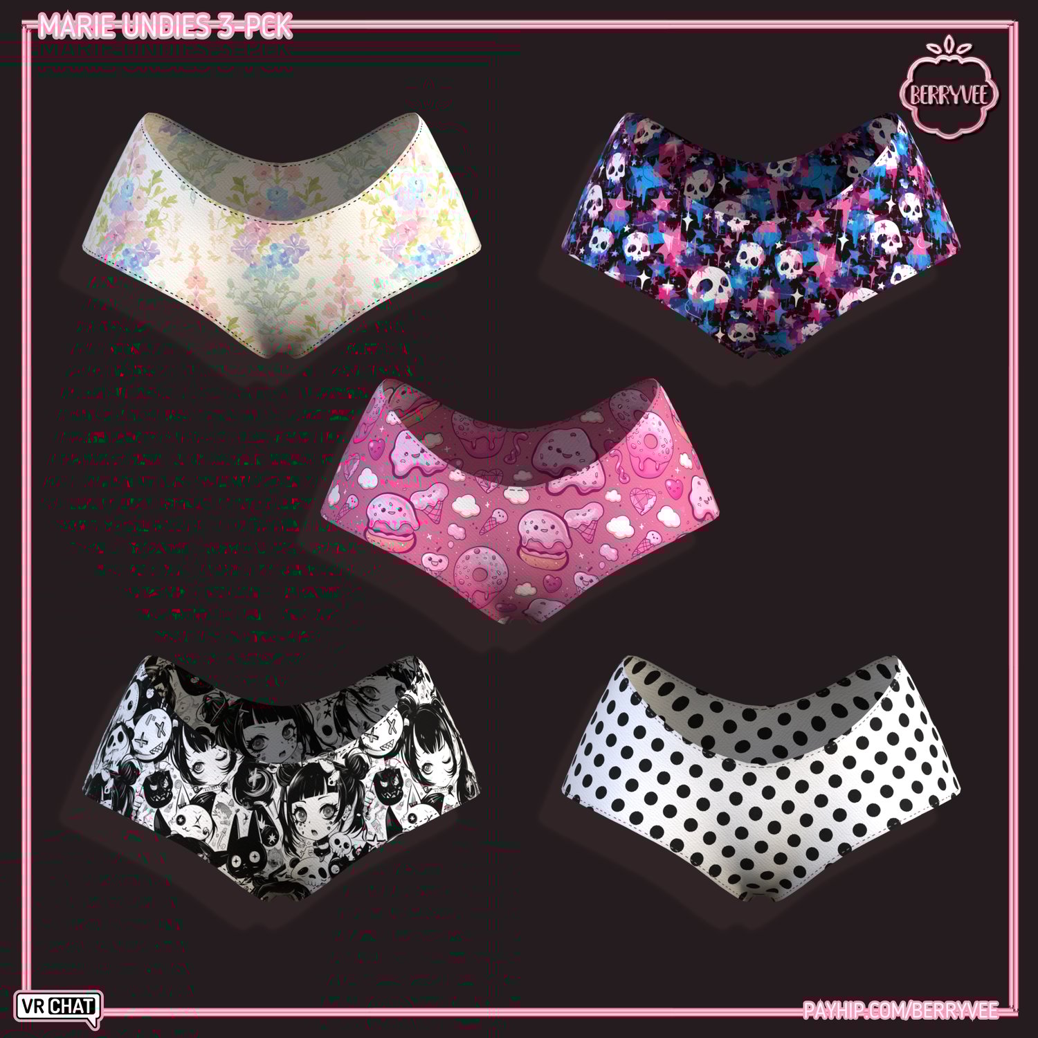- ✅ All Assets and Avatars sold by berryvee must be properly credited and require hyperlinking to either my Gumroad, Payhip or Discord. [e.g. " Via Hair by berryvee " or " Via Hair by berryvee " ]