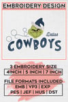 Christmas Grinch Face x Dallas Cowboys NFL Team Embroidery Designs, Grinch Embroidery Files, NFL Cowboys Football Team Logo Embroidery, Merry Christmas Machine Embroidery Design, Digital Download