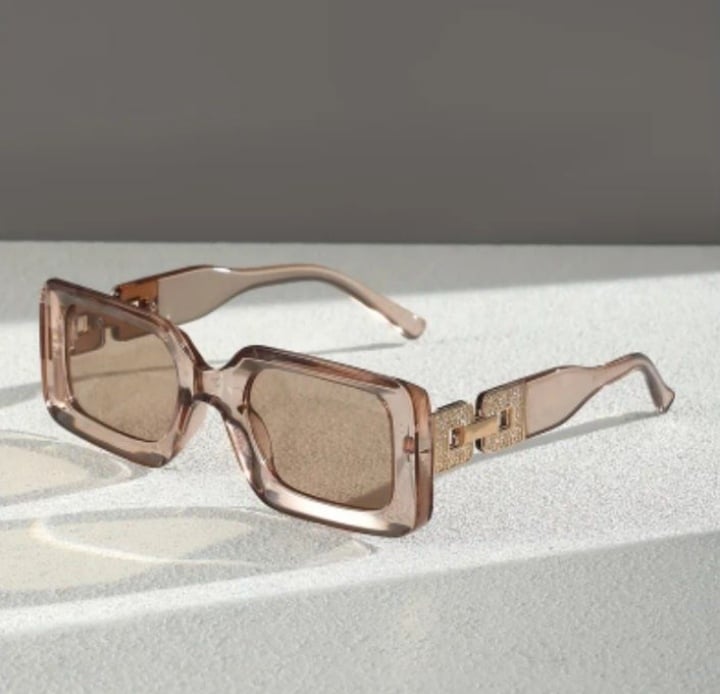 - Stylish retro rectangular design with a chic champagne-colored frame.
