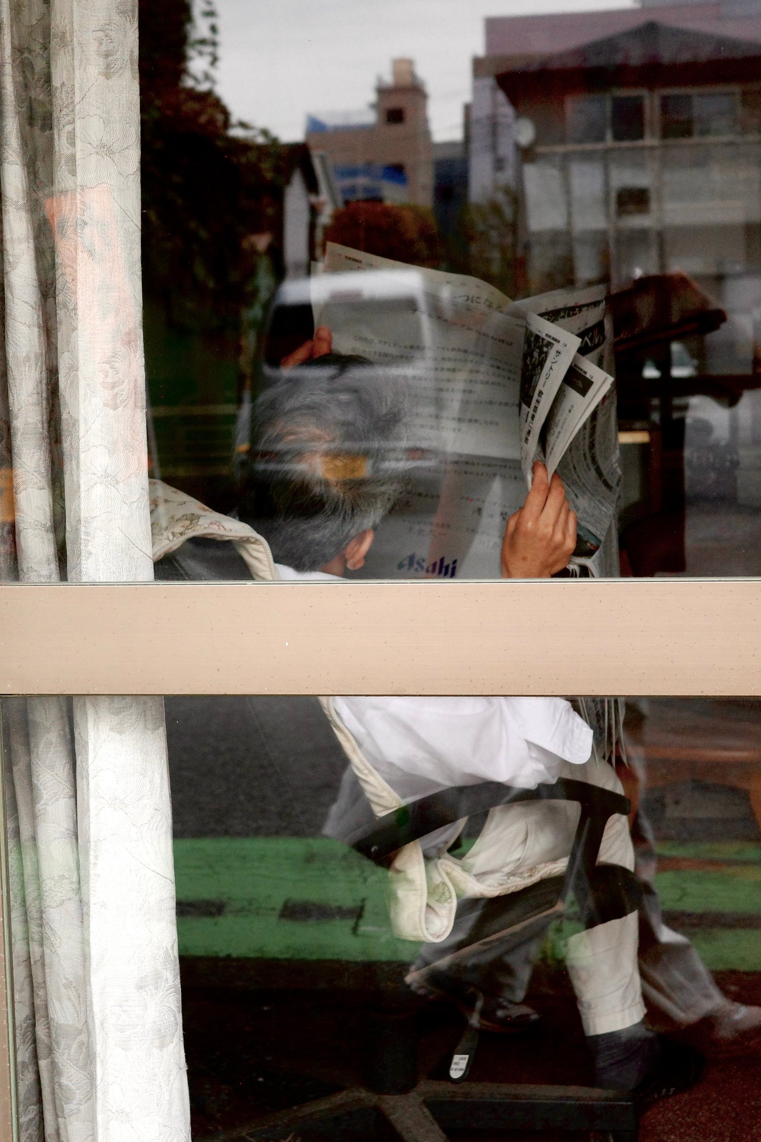 This is an elderly man reading is daily newspaper in Saitama, Japan