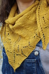 Sycamore is a traditional triangular shawl with a lovely geometric lace and cable section. It is knitted from the top down, starting with a bump-free garter tab, and has a narrow garter stitch border along the top edge.