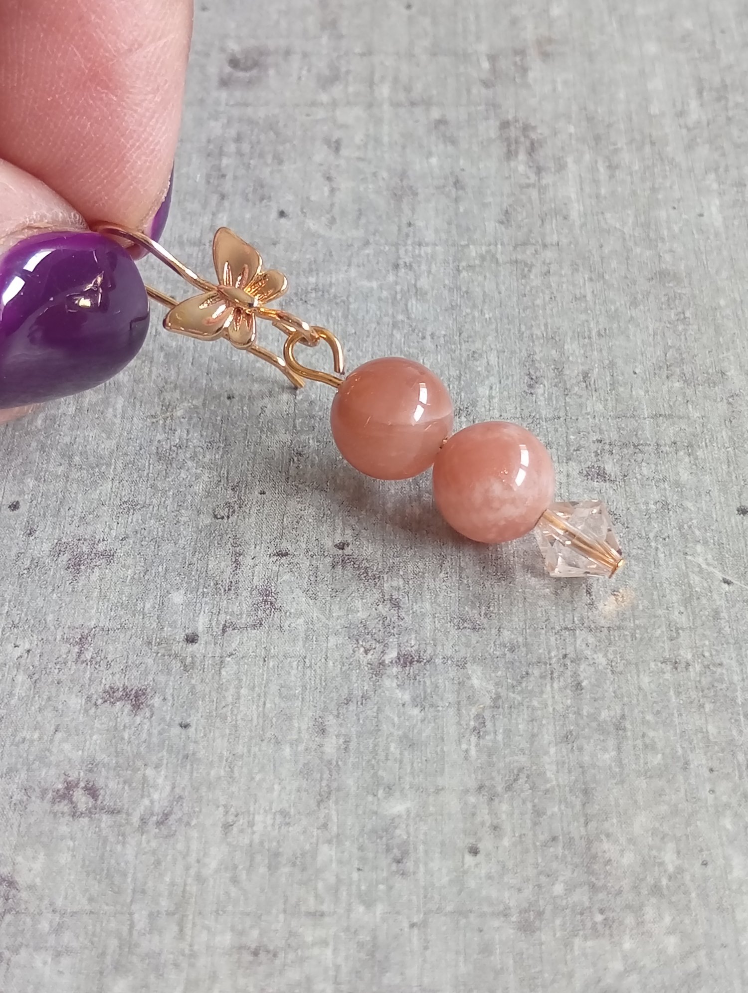 • Pierres : perles du soleil 8 mm + perles Swarovski pêche