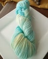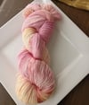 Merino Sock is a sock weight yarn (obviously!); 100% superwash merino, 438 yards sold in 100 gram skeins. This base takes dye clearly and vibrantly. This yarn is great for lace, all kinds of accessories beyond socks, as well as garments.