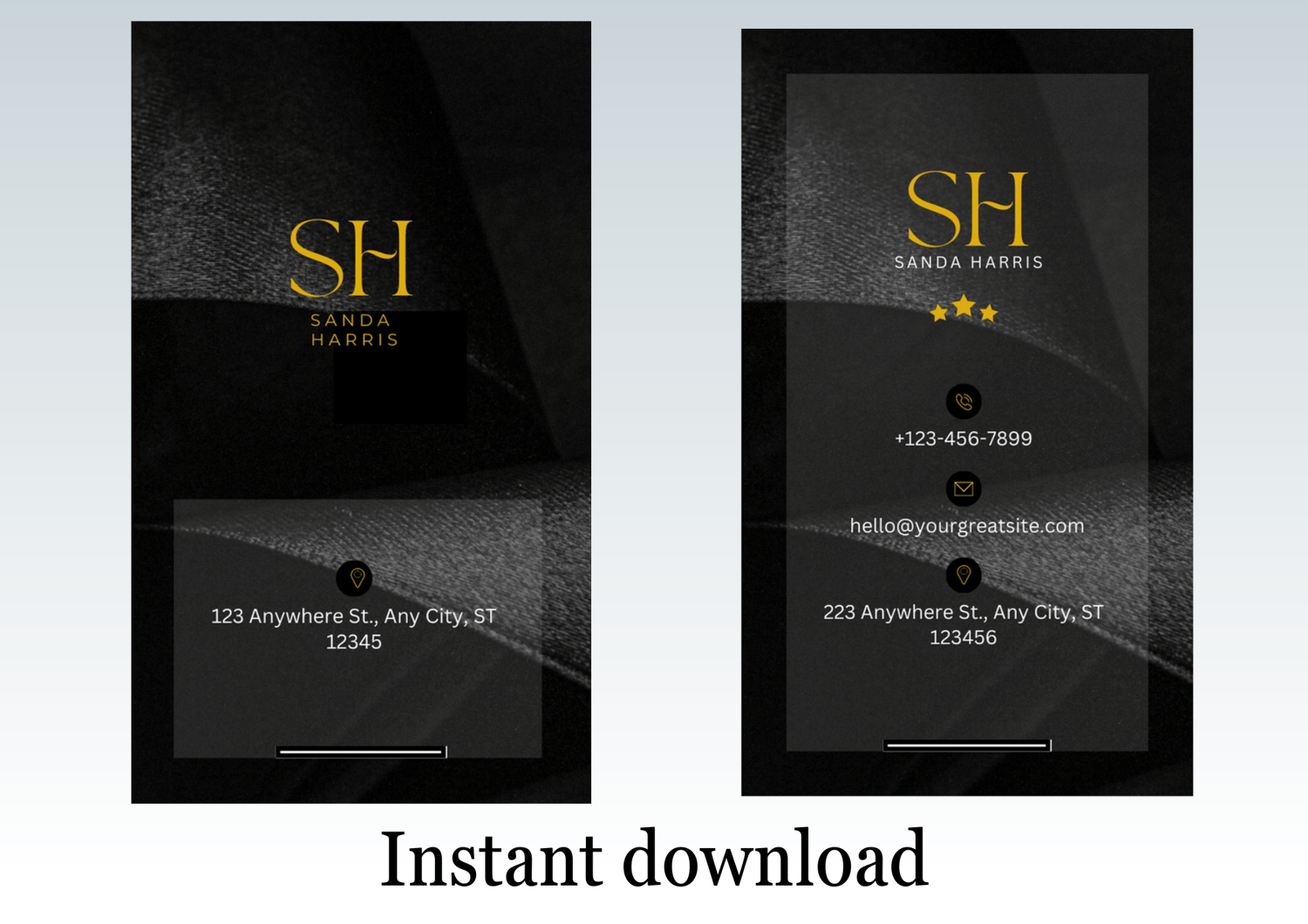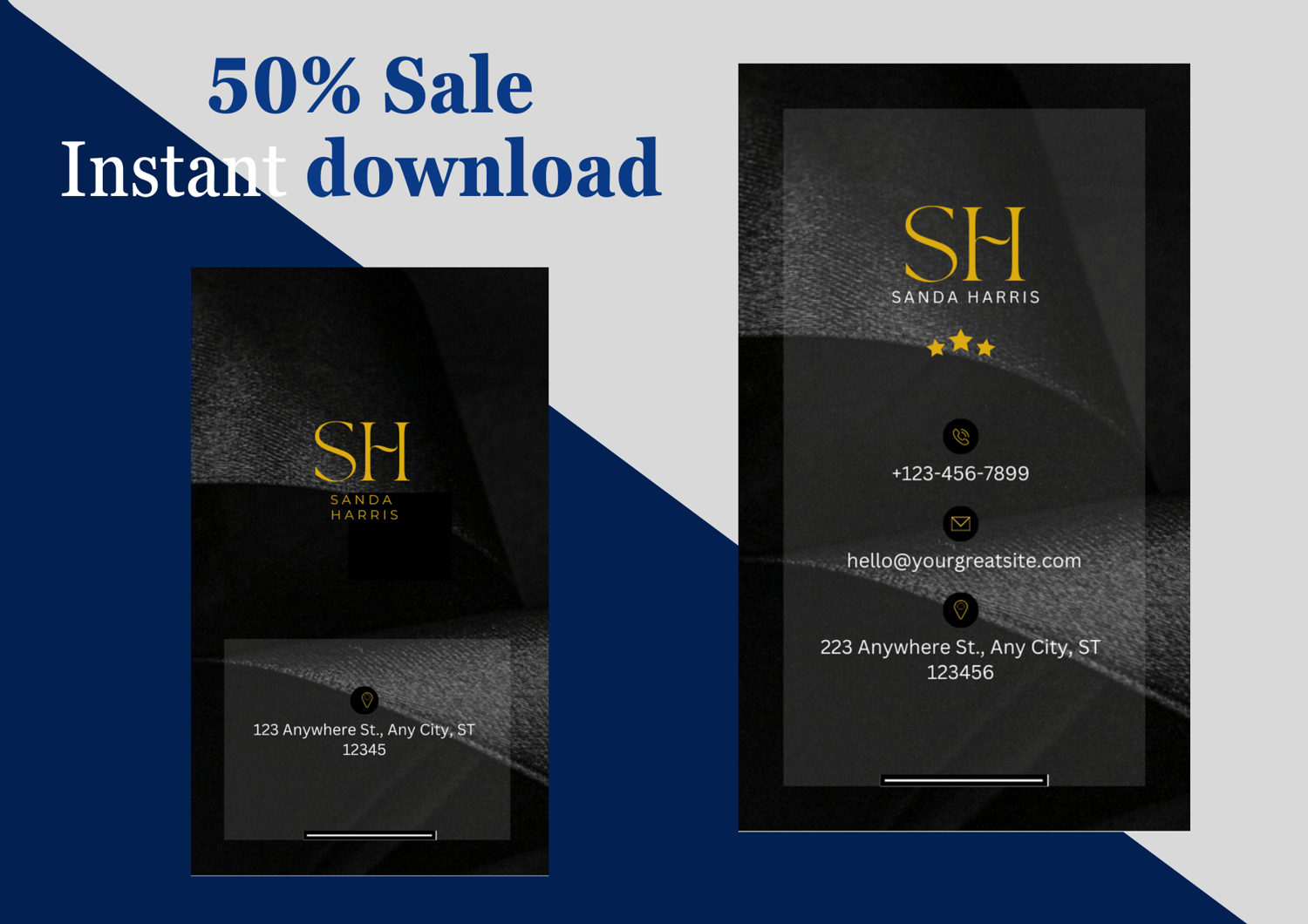 A modern black personalised design is elegantly placed on the back and has plenty of room on the back of the card to list your contact details, including your name, job title, phone number, email address, and website. Your information will be presented with professionalism and clarity, ideal for professionals, creatives, and entrepreneurs, It leaves a lasting impression at networking events, meetings, and conferences. Make a statement With our minimalist, stylish Business Card! You can make a statement and improve the perception of your company.