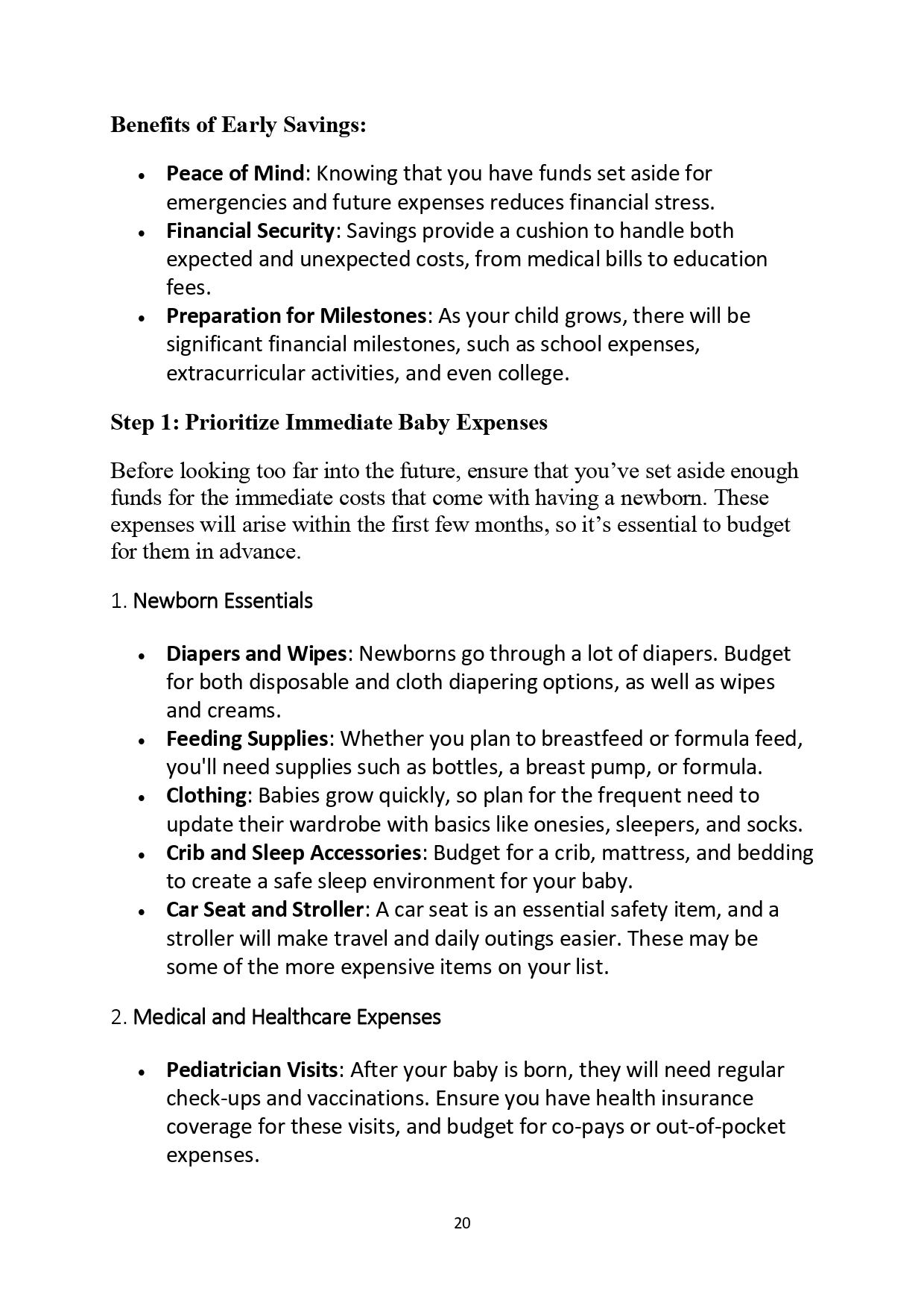 This comprehensive guide breaks down everything from medical expenses and prenatal care to setting up an emergency fund and saving for your baby’s future. Learn how to budget effectively, avoid debt, and plan for both short-term needs and long-term financial goals. Each chapter offers practical tips, budgeting tools, and real-life stories to support you every step of the way.