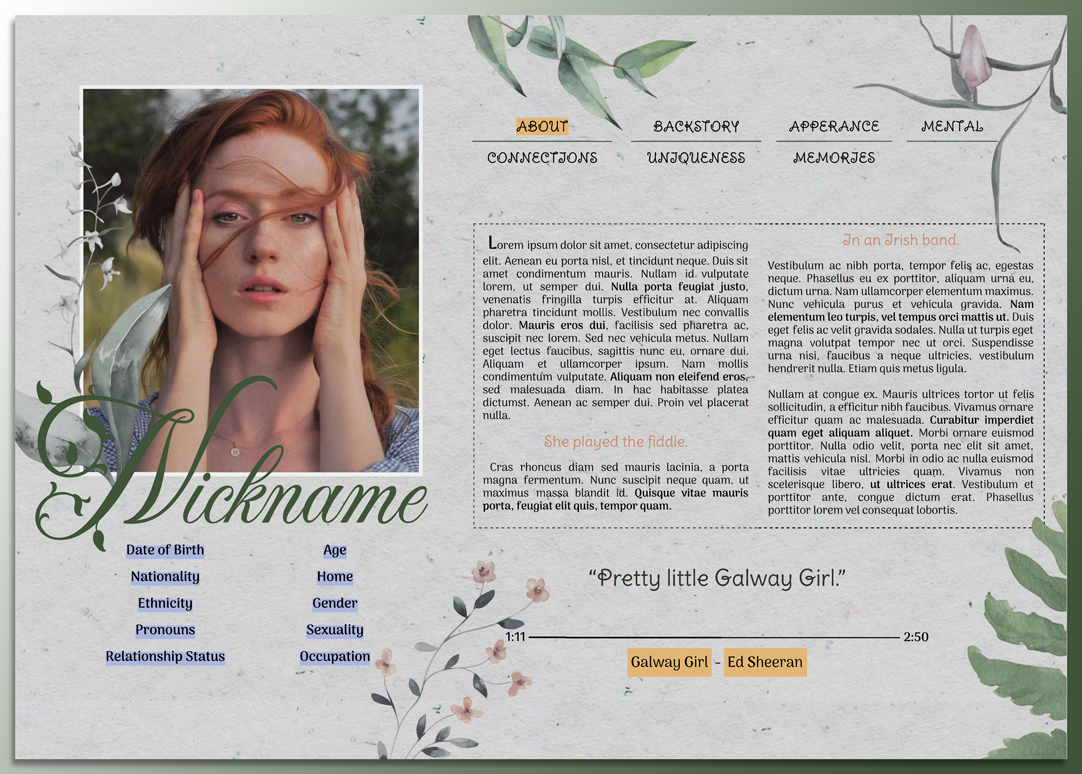 I wanted to create a google docs template that felt different from anything I’ve made before, and while I was listening to “Galway Girl” by Ed Sheeran, this design popped into my mind. I just loved creating this doc and really enjoyed the aesthetic. Hope you like it!