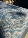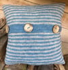 Beautiful cushion cover inspired by iconic patterning on classic Delft tiles. Designed for the Castleshaw DK yarn in blue (woad) and natural silver, this pattern is a fun and interesting colourwork knit. The cushion is knit in one piece and seamed together down the sides.